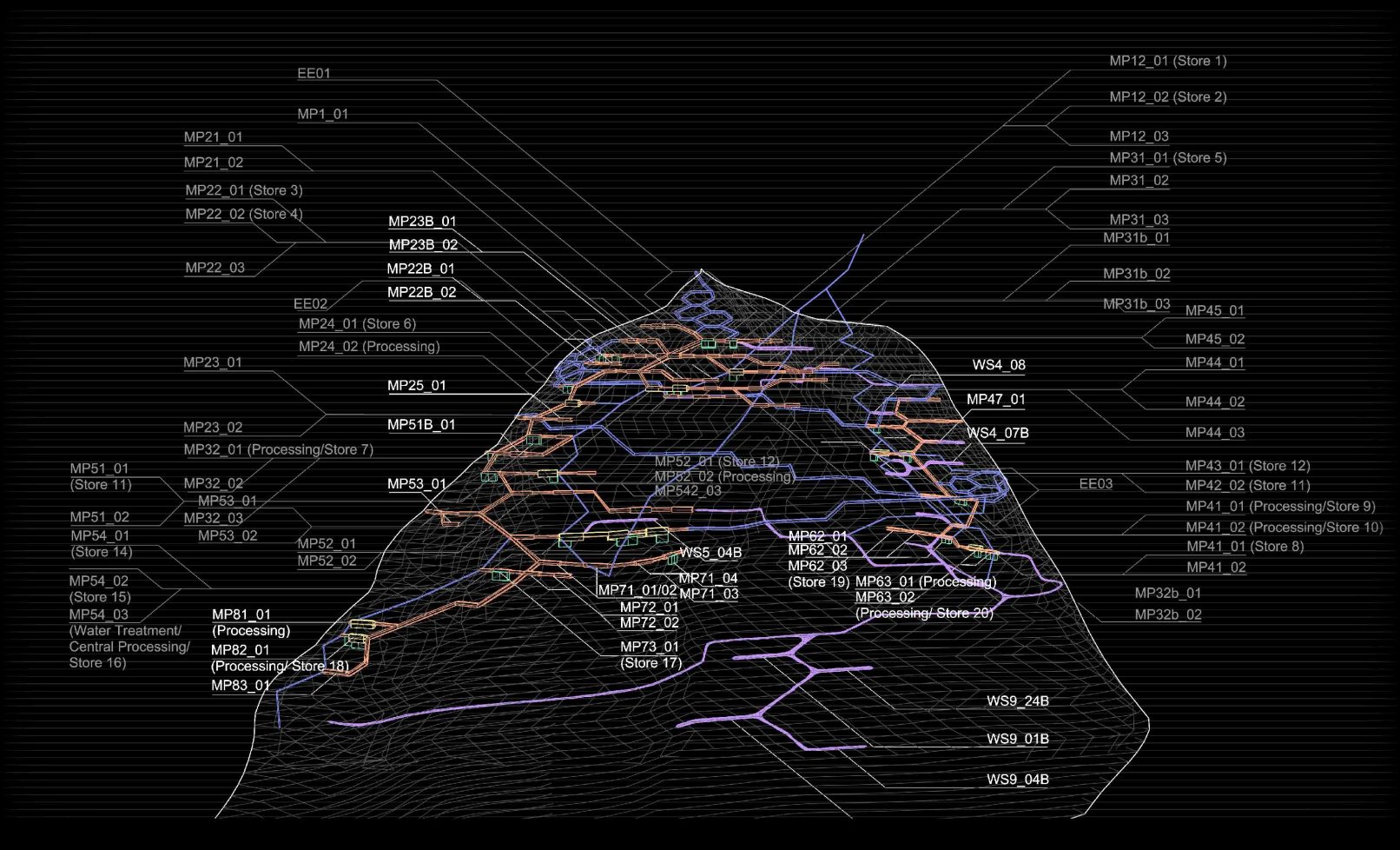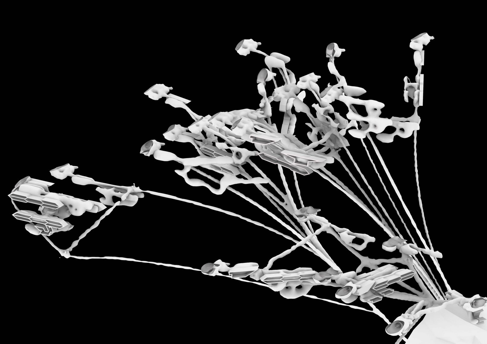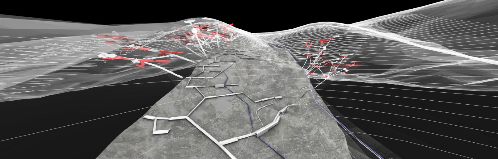 The black strata exists through its non-existence. To seize the post-material future, and to redefine the axionomatics of the capital machine, patchwork communities, led by an organized intelligence, adopt complicit & subversive black-structures in the struggle to define Anthropos’ place in a post-capitalist _topia. To speculate: the ground holds the territory, the nomos in which countless inscrutable forces are organized upon. Then, the (under)ground is (un)territory, a veiled tabula rasa that remains undefined by sovereignty and agency. To mold the subterranean is to mold the roots of emancipation itself. This is an exegesis of such.